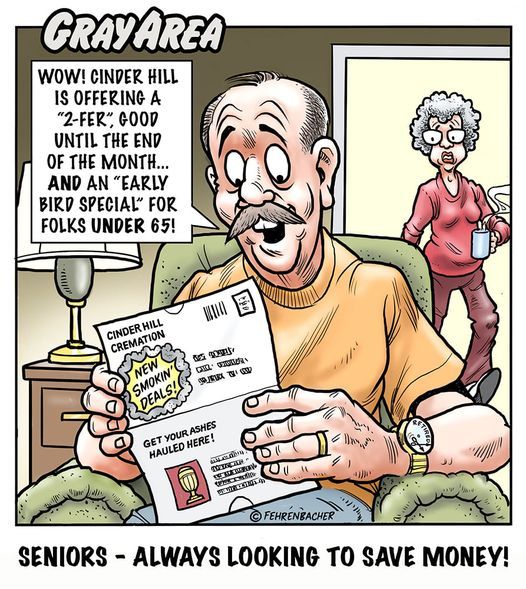 Cartoons depicting senior citizens coping with other seniors, family and the challenges of living in today’s society.