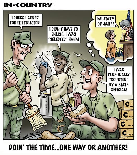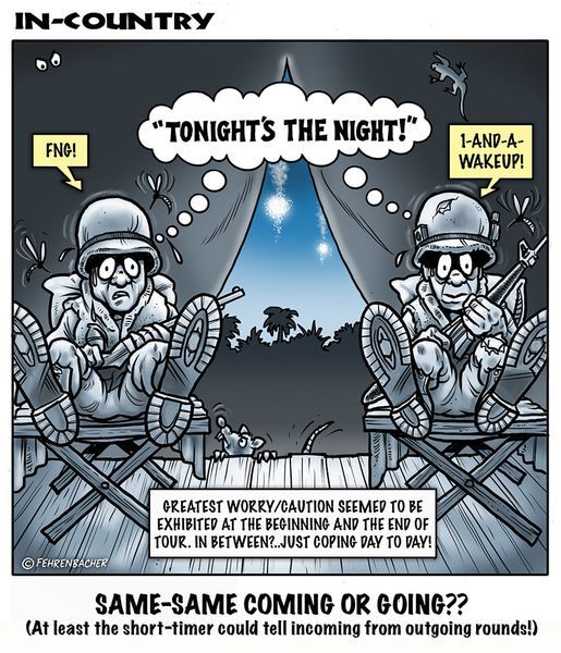 Cartoons depicting the experiences and memories of veterans who served in South Vietnam.