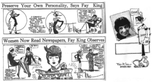 IF FAY KING HADN’T MARRIED A PRIZE FIGHTER named “Battling” Nelson, we’d know almost nothing about her life. We know her opinions about the manners and mores of the twenties and thirties from her comic strips, cartoons and columns. And we have an inkling of what she looked like because she often included self-deprecating caricatures of herself in her cartoons or to accompany her columns. But just an inkling.