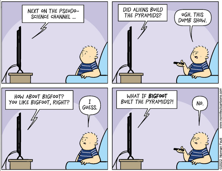 So I’m watching Ancient Aliens yesterday or the day before (Hey! I don’t have to explain my viewing habits!) when they start with those monoliths from a couple Decembers ago as a lead in to those and all other monoliths throughout history being proof of extraterrestrial visitations. Now these are new shows treating the debunked pillars as honest-to-gosh mysteries.