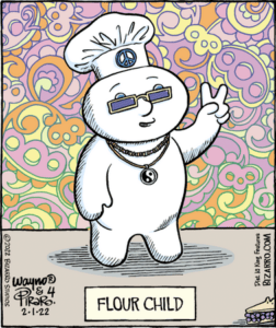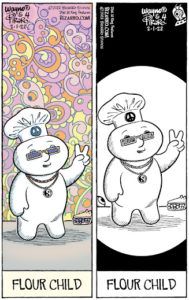Pun Day arrived on Tuesday this week. This gag required some extra preparation for print. The main drawing was simple, but it took much longer to design the psychedelic background and to choose colors for it.