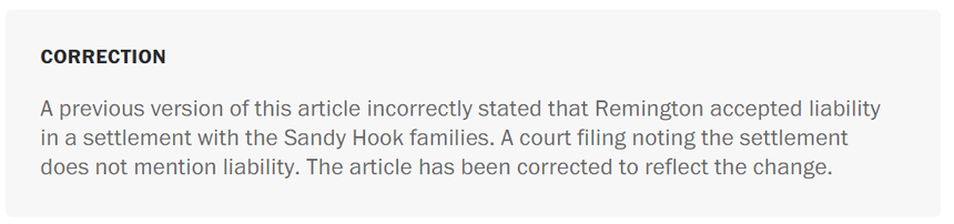 It was a settlement, not a judgment, and Remington was not — despite all the headlines — found liable, nor, as the correction points out, did they voluntarily accept it.