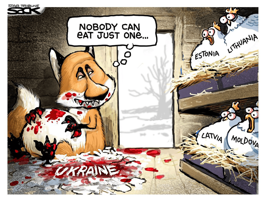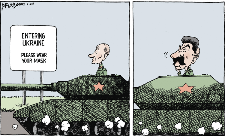 Steve Sack accurately show’s Putin’s longterm planning, though I hope that he’s premature in declaring Ukraine dead and that Putin may find that governments can be overthrown more easily than people.