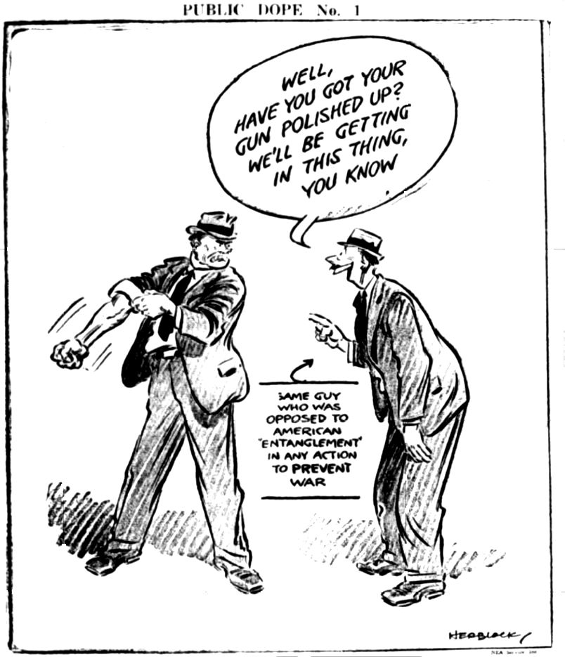 However, you shouldn’t assume a huge cry arose over here when Hitler moved on Poland in ’39. The German-American Bunds piped down quickly, and nobody claimed to like what Hitler was doing, but there was a substantial and effective call for American neutrality, even as British troops landed on the French coast.