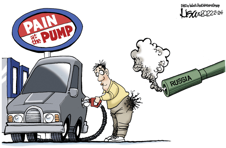 Even Lisa Benson (WPWG), who usually finds a way to blame things on Biden, places the blame for rising gas prices on Russia, and I like the “O Cripes, now what?” expression on the motorist.