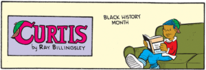 Debuting in 1988, Curtis was one of the first nationally syndicated comic strips to feature a mostly Black cast. Today, the strip is widely read in print and digital platforms. However, as a young Black cartoonist, Billingsley struggled to get the chance to portray his people through his work.