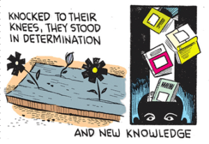 “Charles Schulz and Mort Walker, Peter Bailey, Jules Feiffer. I took something from everybody. They all inspired me in different ways,” he says.