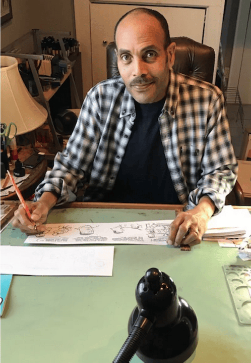 Trying to make ends meet, he designed for magazines, merchandise and greeting cards. He’d always wanted to draw comics and ever since he was 16 years old, he would draw one comic strip every year to pitch to publishers. Six months after landing an internship with Walt Disney Animations, he quit to launch his first strip, Lookin’ Fine. The strip debuted in 1980 under United Feature Syndicate.