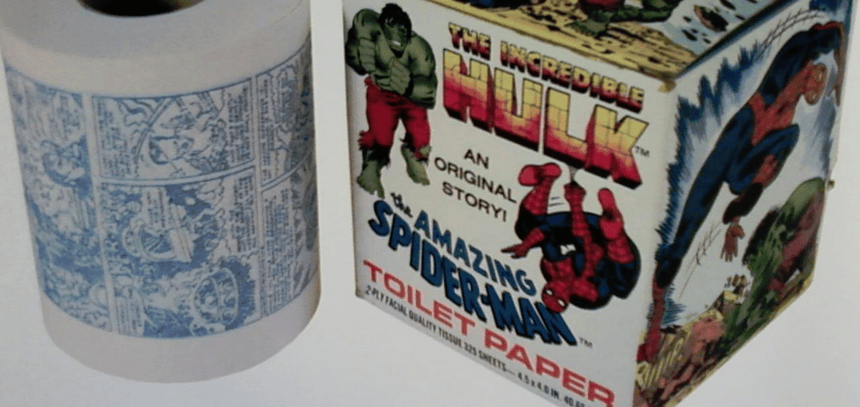 An all-new original 6-page story was commissioned to be featured on this roll of actual usable toilet paper. It’s credited only to Jim Salicrup and Michael Higgins on the item itself, but those in the know indicate that Marie Severin produced most of the art.