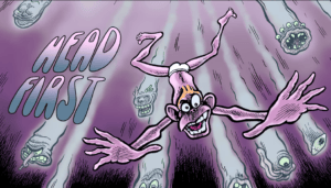 The conceit behind “Head First,” a finished book that Eagan is planning to publish in the summer, has to do with the strange psychological elongation of time that often happens in times of trauma. The book begins with a man falling from a building, which happens somewhere around Page 8. The next 90 or so pages chronicle what happens in the few seconds it takes him to hit the ground. But it happens in subconscious time…