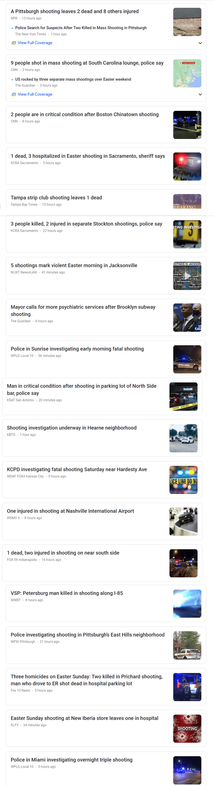 I was surprised but pleased to see that Ed Hall had also noted that, on the day Christians celebrate a victory over death, a whole lot of people in this country encountered death at the hands of firearms.