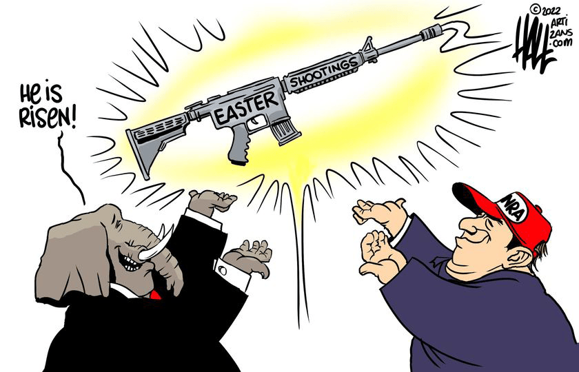 As it happens, Steve Cousineau had posted this cartoon not only before Easter, but before the subway shooting in NYC.