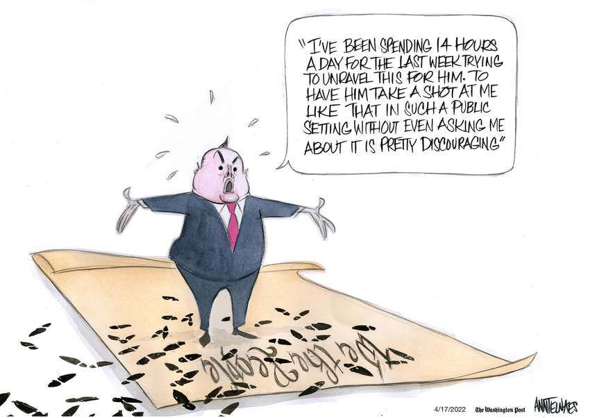 A different sort of Juxtaposition to start the day: The famous lines from Arthur Conan Doyle’s “Silver Blaze,” combined with Ann Telnaes’ righteous outrage over the revelations of Senator Mike Lee’s texts, outlining his plan to cooperate in overturning the 2020 elections.