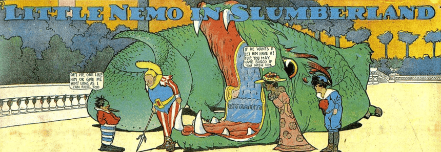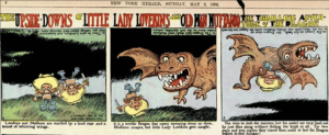 The newspaper format was much larger and cheaper, providing a lot more empty space to fill. The audience was less sophisticated, but (possibly because of this) more open to a particular type of experimentation, despite the dumb and lowbrow humor… these American Sunday pages became the breeding ground for something new. Weirder, rougher, slapdashier. Also easier, for children, but not childish. More popular. More … somethingier.