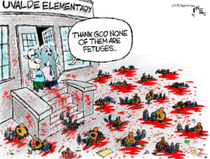 What are the odds that on the same day I receive a journalism award from a human rights organization, the Robert F. Kennedy Human Rights organization, for a cartoon on school shootings that’s there’s another school shooting? In this country where politicians refuse to do anything to stop mass shootings and end the easy accessibility of assault rifles designed to kill as many people in the fastest way possible, pretty good. We don’t live in Belgium.