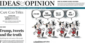 Another syndicated cartoonist, whose local newspaper was hit by Gannett’s big change, vented, “What I wanna know is, what does a newspaper become without an editorial page? #pennysaver.”