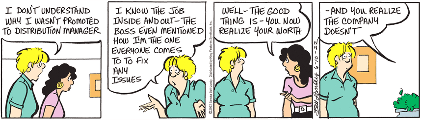 Susan’s situation is more insidious, because it’s not targeted specifically at her. It’s an overall management attitude, and even this insult comes with a dose of back-handed praise that only leaves her with a sense of brooding discontent. It’s harder to push back against nebulous misery.