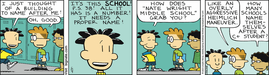 On a related note upon which I touched a few days ago, Big Nate (AMS) inadvertently strikes a solemn truth that Scot Fitzgerald never figured out, and which college presidents have: