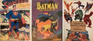If you were a comics fan in the mid-1970s, the appearance of Superman from the 30s to the 70s, Batman from the 30s to the 70s and Origins of Marvel Comics on the shelves of bookstores and libraries was a monumental occasion. Though these books were not book-length comics works like Burne Hogarth’s 1972 adaptation of E. R. Rice’s Tarzan of the Apes, or even the first anthology of classic superhero comics collected in hardcover (Jules Feiffer’s The Great Comic Book Heroes appeared in 1966), they provided some of the first affordable access to comics history, and crucial validation that superhero comics deserved a place on the bookshelf. These books as much as any in comics history paved the way for the graphic novel revolution in the trade book industry that ripples down to the present day.