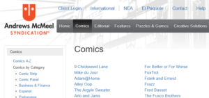 Skip to commentsAs the Washington Post Writers Group (WPWG) continues to dismantle their comics syndication service, the Mike du Jour comic strip by Mike Lester has signed on with Andrews McMeel Syndication (AMS). This week the title was added (out of alphabetical order) to the AMS page of syndicated comics.