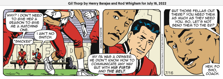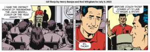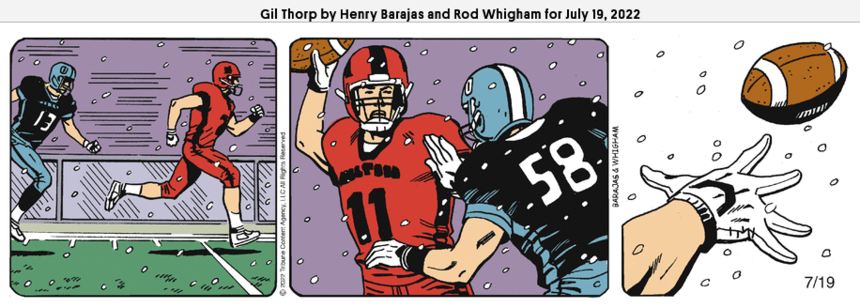Skip to commentsHenry Barajas, new writer of the Gil Thorp comic strip, was kind enough to have a chat (via email) with The Daily Cartoonist on taking over as offensive coordinator for the long running (sixty-four years) Tribune Contents Agency daily a month ago.
