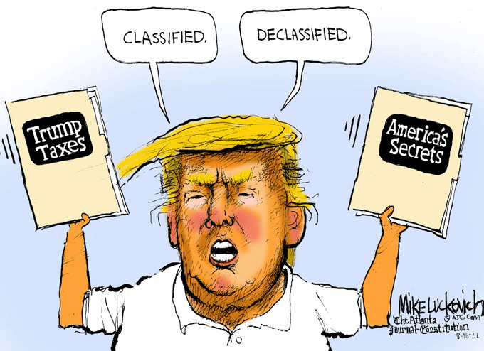 Granted, “free” may be the wrong word, but we’ll never know. As Luckovich points out, Trump’s tax returns remain a deep dark secret.