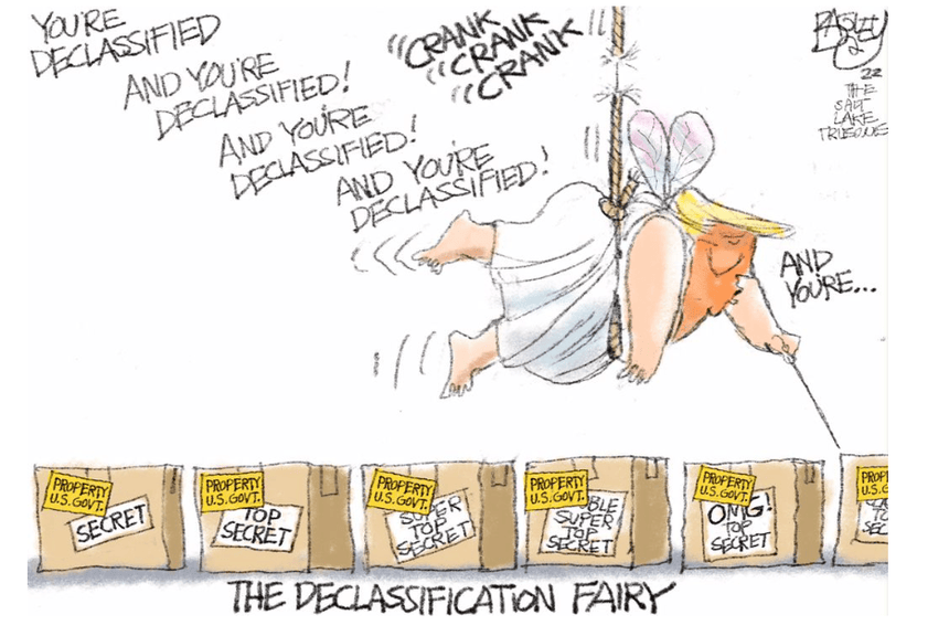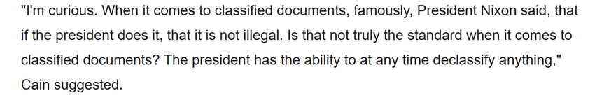 True, he could argue the basic premise, and there’s no predicting how the McConnell Court would rule on this matter of Faith vs Law, but, even then, he couldn’t declassify things without specifying which of our nuclear secrets were now free for use by rival governments.