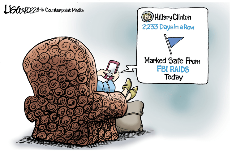 The fact that the FBI didn’t have to search Clinton’s home for the information needed, and the fact that she sat through 11 hours of questioning without taking the Fifth, and the fact that no significant security violations were found, has nothing to do with anything in MAGA World.
