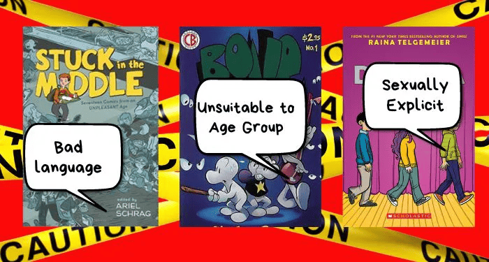 Though comics has been a part of the American literary landscape for well over 100 years, it was not until the early 2000s when more comics began to make their way into schools and libraries. Many were, of course, of the superhero variety, but as comics became more widely accepted as a legitimate form of reading and literacy, more comics beyond the superhero worlds emerged. The late ’00s and early ’10s were especially vibrant times for comics for young people, and as such, censors made their voices heard, challenging and banning comics.