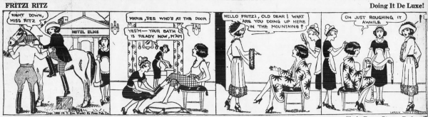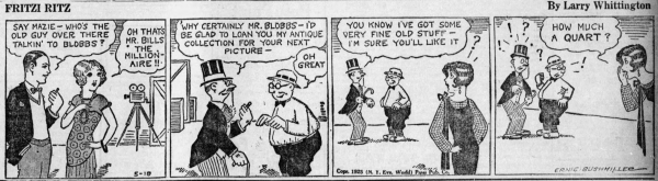 Whittington’s work reflected his journeymanlike but undistinguished talent; his Fritzi Ritz was rooted firmly in the idioms of the era. Flapper humor was one of the pop-art signatures of the Jazz Age, and strips showcasing attractive ditzes—notably, written by men working in an industry almost completely bereft of women—were commonplace.