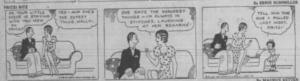 Anyway as mentioned above Fritzi didn’t suddenly begin appearing in dozens of newspapers when Ernie took over, although the strip did get a Sunday page in 1929. On October 6 of that year to be exact.