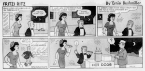 In 1925 Whittington sought fame and fortune with the Hearst organization and left Fritzi. Pulitzer’s Press Publications replaced him with Ernie Bushmiller, a New York World staffer, who would indeed garner fame and fortune as a cartoonist, though not with Fritzi.