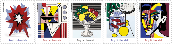 Spoiler: No comics related stamps – yet. Though the Lichtenstein Centennial series gets close with the stamp featuring his “Standing Explosion (Red)” sculpture which was inspired by his comic book inspired art such as Whaam! and Blam.