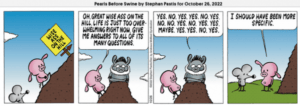 On October 26 Over the Hedge and Pearls Before Swine sought knowledge from reliable sources.