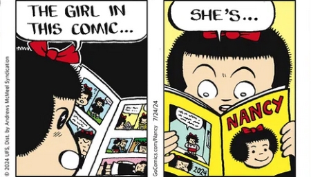 “Mik” signed the strip until 1970 though it is known Frank Thomas ghosted the comic from 1955 -1965. In 1970 Al Plastino began ghosting Ferd’nand, finally signing the strip as “Al Mik” in 1972. In 1989 “Rehr Mik” (Henrik Rehr) took over the strip until late 2006 (November? December?) at which time it went rerun until ending January 7, 2012 A Sunday strip ran from April 4, 1948 to July 17, 2005.