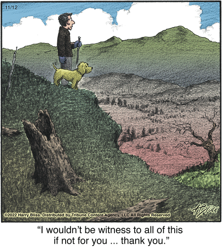 I particularly like this Bliss (Tribune), because my life includes taking the dog for a romp twice a day which, combined with my 35-hour work week, reduces me pretty much to being her chauffeur and, yes, I’m grateful that she gets me out of the house.