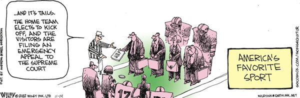 Non Sequitur (AMS) has it right: America’s favorite sport has become bitching and moaning and insisting that the refs are corrupt, the rules are wrong and the outcome must be challenged.