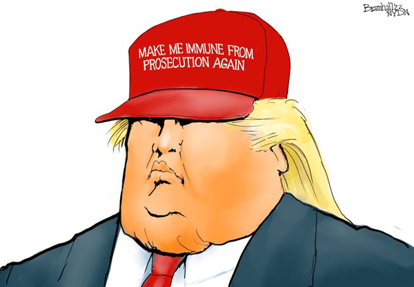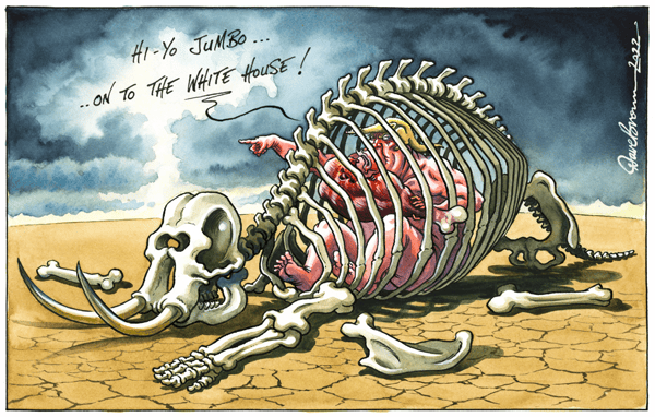 “Let me up, you’ve had enough” is a dubious way to begin seeking vengeance, and Bramhall and Luckovich are not the only two observers to suggest that Trump is simply contriving a stalling tactic to keep Tish James and Fani Wilson off his back while his attorneys come up with another cunning plan.