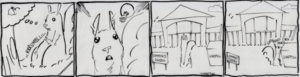HB: Well, the process, we sort of establish this a little bit in the first book that we did together. But I generally will start off, Steve, in this case, he’s talking to some animals in the woods. There’s a bear, and there’s a deer, and a raccoon, and other animals. So he’s telling this anecdote to these animals. Part of the reason I do this, open it this way, it’s kind of an establishing shot, is that I love to draw animals and trees. It’s just fun for me.