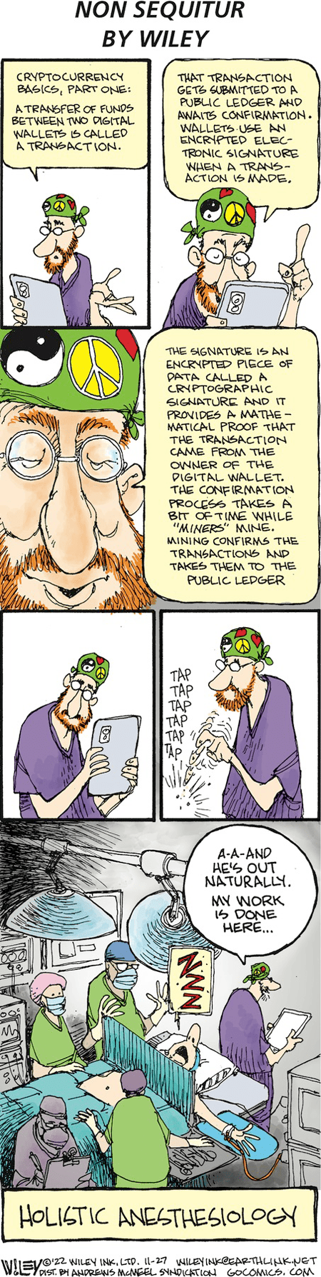 Whatever his abilities and intentions, I’m willing to admit that, like the patient in Non Sequitur, long-winded explanations of things that will never have any application in my life just put me to sleep.