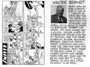 When I became Associate Editor / Comics of the News Syndicate, it was just after Smitty was retired, in 1973. Walt lived until 1979. The Long Island chapter of the NCS meets in formal honor of Walt, calling itself the “Berndt Toast Society.” Fitting, for its conviviality.