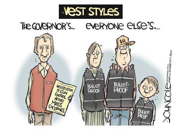 Cole notes Virginia Governor Glenn Youngkin’s refusal to discuss guns in the wake of two recent mass shootings in his state, instead, as in Auchter’s more overall observation, blaming the problem on mental illness.