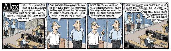 The joke here is that there’s no joke. I was at a paper that offered buyouts, which not only yielded them a few voluntary cuts up to the number of buyouts available, but — given how many applied after the buyouts were gone — provided management with a list of people who would probably quit if sufficiently harassed.