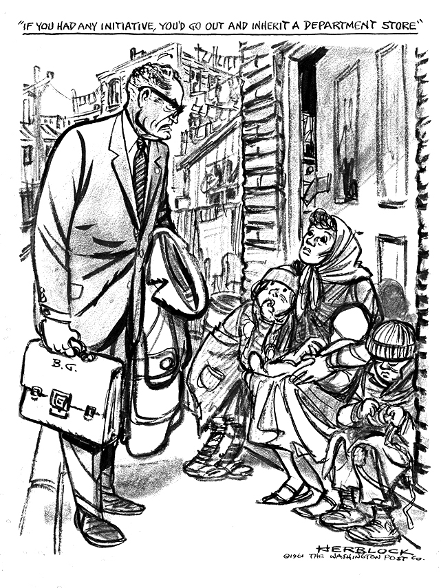 Though there are times when a specific criticism touches on an eternal problem, as with Herblock’s 1961 takedown on Goldwater’s lack of empathy with the poor.