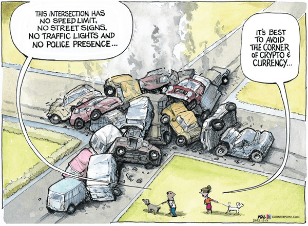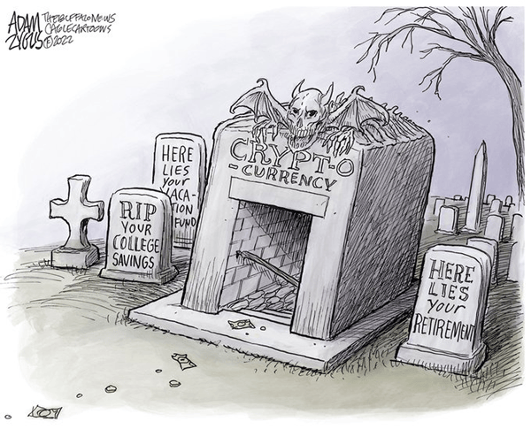 It’s also redundant, considering that the people who — as Adam Zyglis puts it — dumped their college savings, vacation money and retirement nest egg down the crypto rat hole are already asking the question, and probably not reveling in the answer. And, if they are married, I’m sure the circular firing squad is being assembled: Even if they agreed to do it, someone had the idea first.