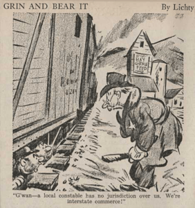 The Library of Congress found the cartoonist who created it (Paul Gregg) and found the newspaper it probably appeared in (The Denver Post) but it still looking for confirmation of the date (ca. early 1933).