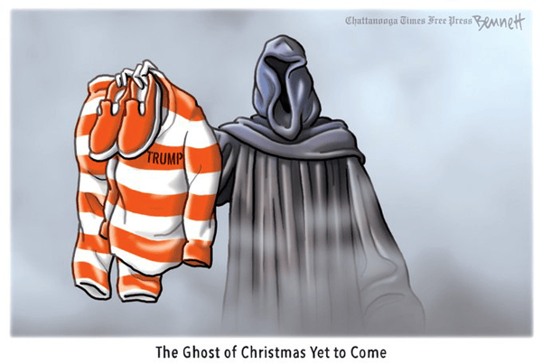 So are we, or, at least, some of us, the difference being that Turner and Brookes can only look on in wonder while Americans, ostensibly, have some control over what happens next. But Clay Bennett (CTFP) presents it as, at best, “Are these the shadows of the things that Will be, or are they shadows of things that May be, only?”