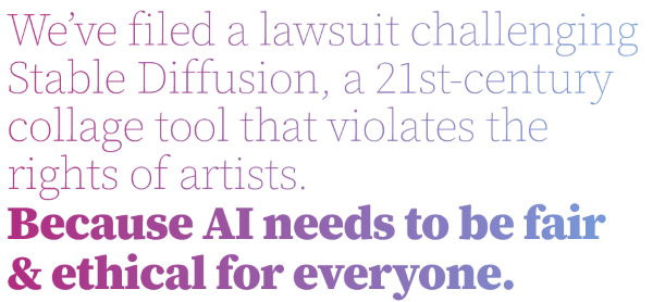 Writers and artists like Sarah Anderson have raised the alarm so much that there is now a class-action lawsuit against various sites “for their use of Stable Diffusion, a 21st-cen­tury col­lage tool that remixes the copy­righted works of mil­lions of artists whose work was used as train­ing data.”