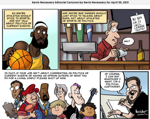 This does not mean an end to editorial cartooning for Kevin. We hope to see him show up on GoComics.