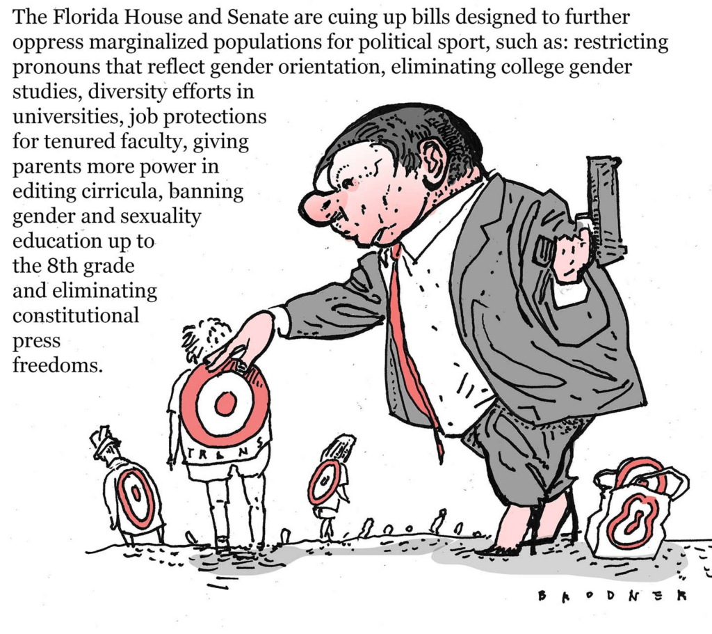 Skip to commentsI will confess I haven’t seen any of the movies up for Oscars tomorrow night, but I will declare Drew Sheneman’s piece to be Best Picture, not of the year but of the week, because comedies don’t get honored often enough and, after a few weeks of sorting through increasingly repetitive cartoons about drag queens and Tucker Carlson, it was indeed comic relief.